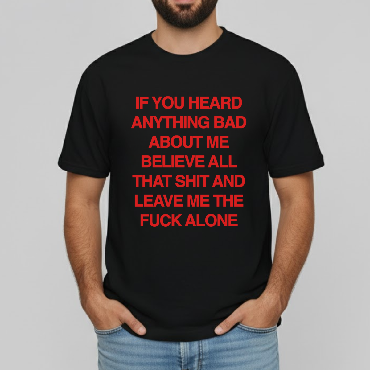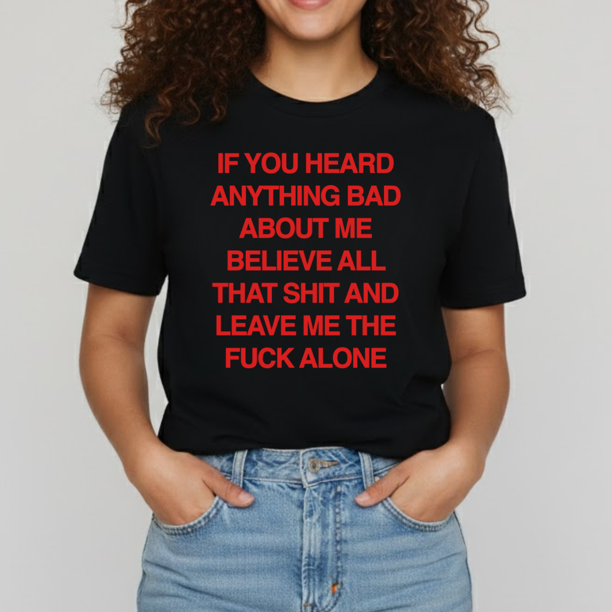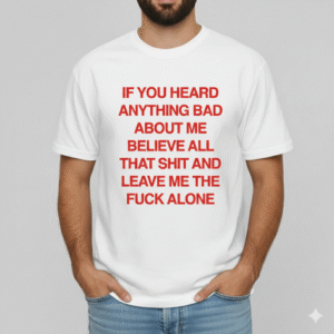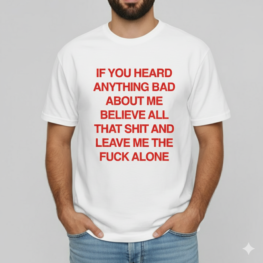 A bold, unapologetic statement tee featuring the message: “If you heard anything bad about me, believe it and leave me alone.” Perfect for anyone with strong boundaries and zero tolerance for drama. Made from soft, breathable cotton with a relaxed unisex fit—ideal for casual wear, streetwear, or gifting to someone who prefers peace over people.